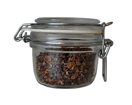 50 g kakaonibs i patentglas. Pynt til kager, desserter is og alle de andre lækre desserter, man kan finde på!